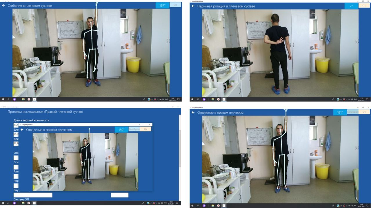 - Измерение диапазона движений в плечевом суставе